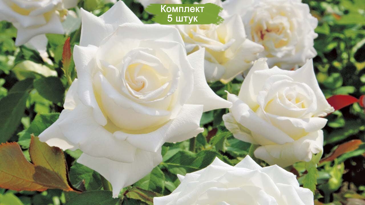 Саженцы кустовой розы Уайт Кристмас (White Christmas) - 5 шт. В комплекте 5 саженцев по цене 4!