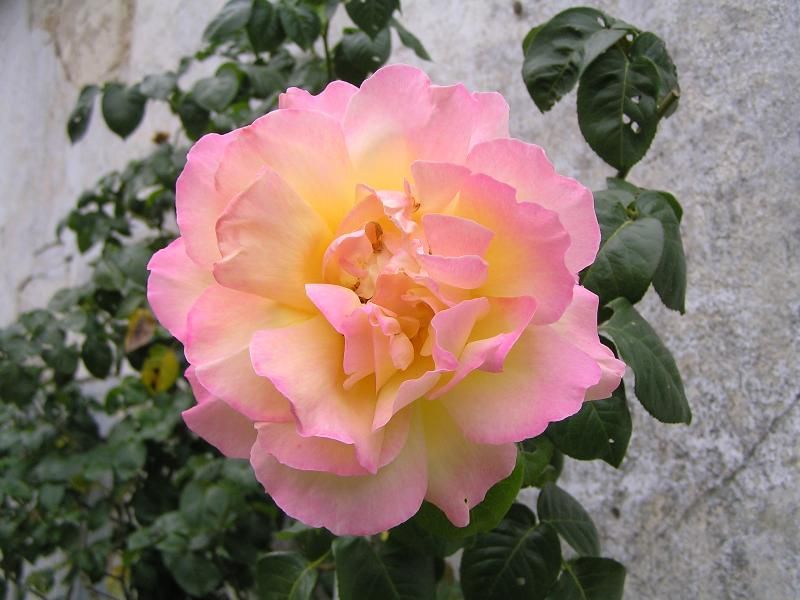 Цветки бледно-желтые с розовой каймой, махровые, диаметром 12 см. Куст прямостоячий, ветвистый, покрыт крупной кожистой темно-зеленой листвой. Обладает приятным сладким фруктовым ароматом средней интенсивности. Кусты высотой 2-3 метра, прямые и компактные, требуют опоры. Цветение обильное, практически непрерывное до заморозков. Очень зимостойкий сорт. Стебли жесткие и ветвистые.